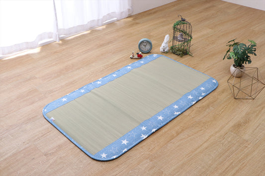 • Infant nap mat made from natural igusa rush grass, vegan and sustainable, providing a breathable and safe tatami play surface for babies.